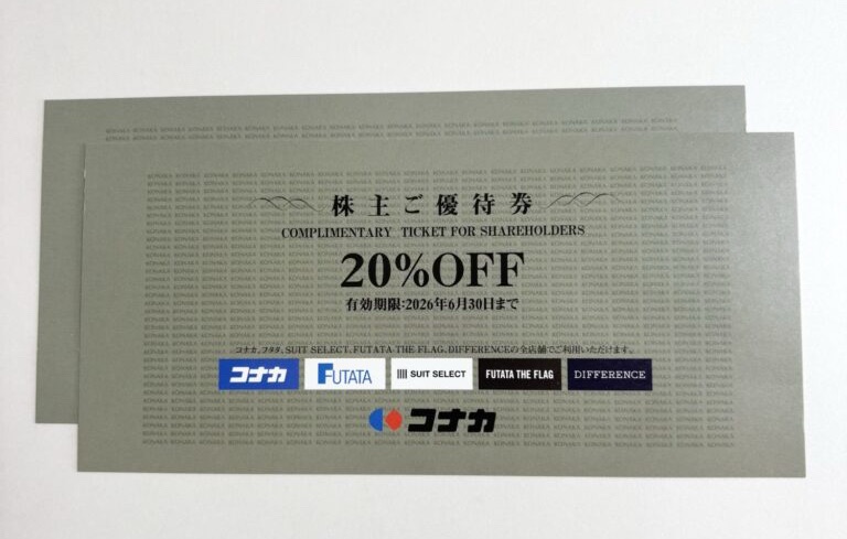 その会社の系列店でつかえる20%OFFの優待券が送られてきます。